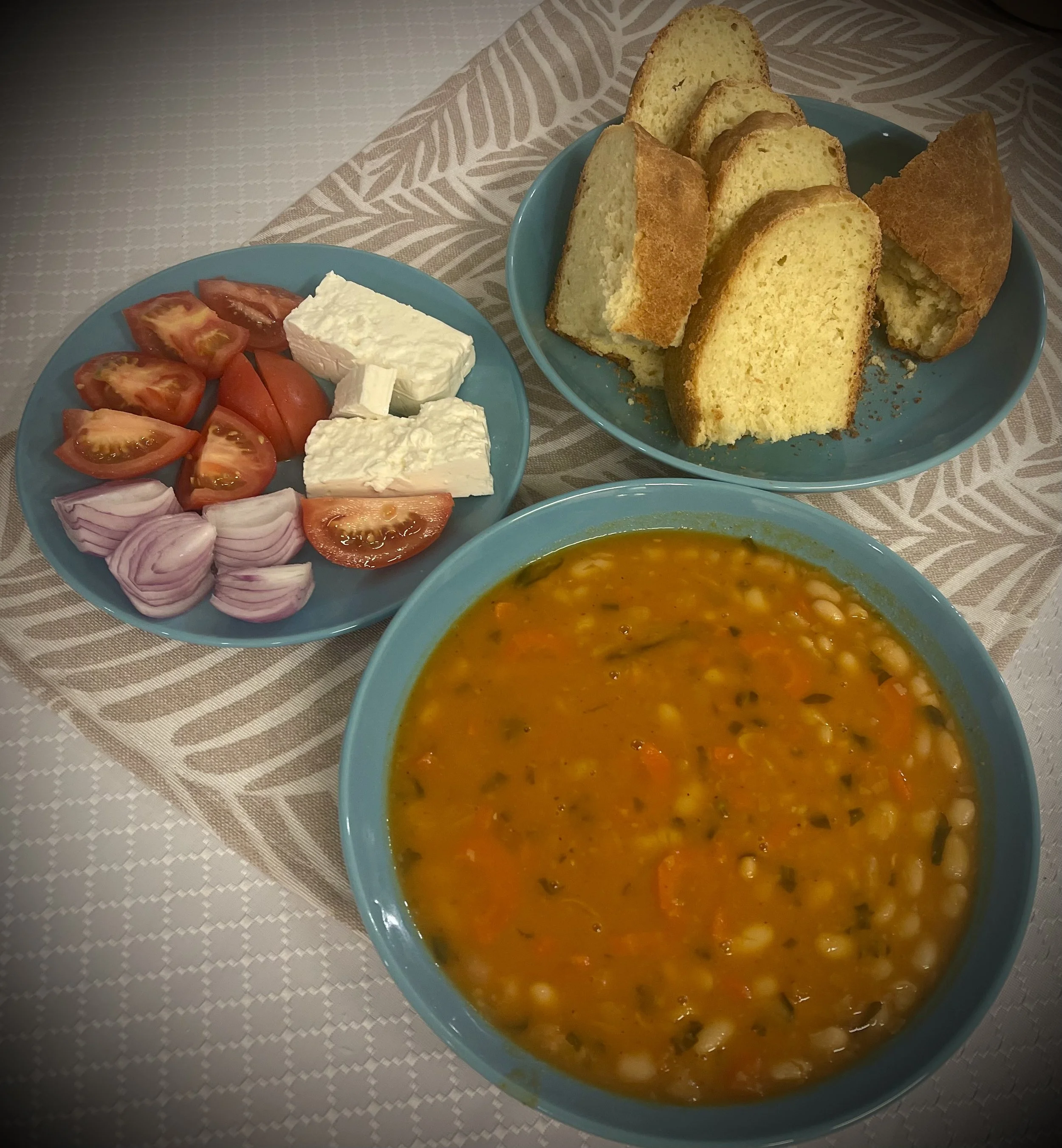 Η φασολάδα δεν χρειάζεται τίποτα παραπάνω… ίσως μόνο μια φέτα φέτα και ψωμί χωριάτικο για βούτες.
