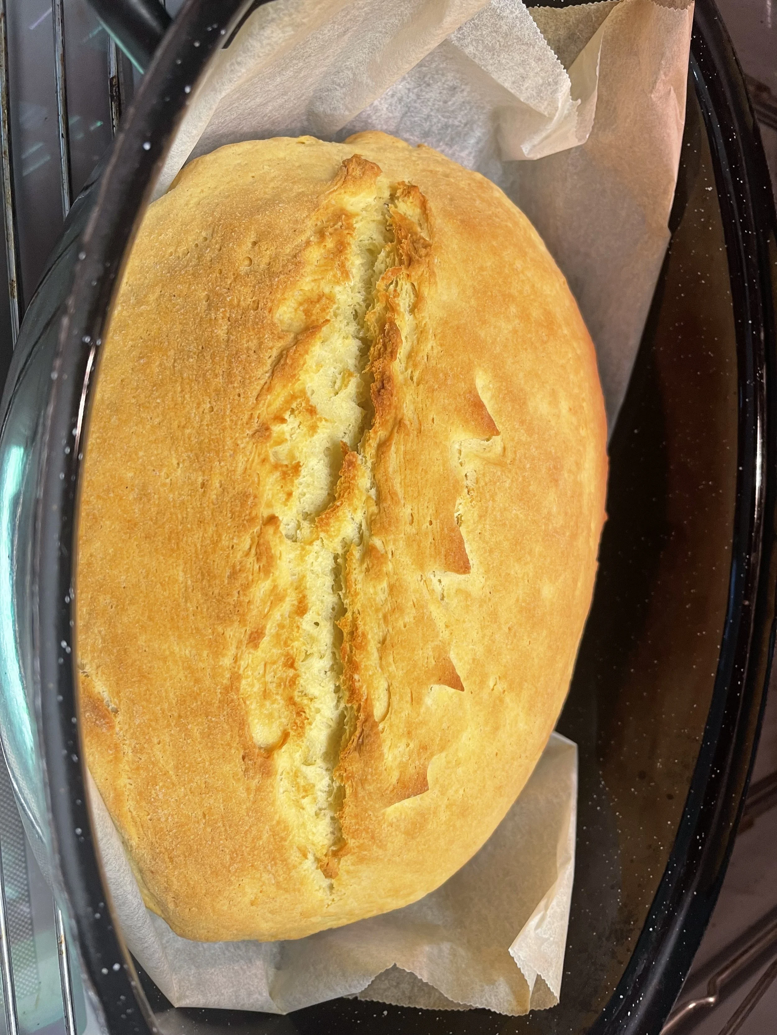 (Αν θες πιο “γεμάτο” ψωμί, μπορείς να προσθέσεις μια κουταλιά ξινό προζύμι ή λίγο σταρένιο αλεύρι παραπάνω.)Πρώτο φούσκωμα: